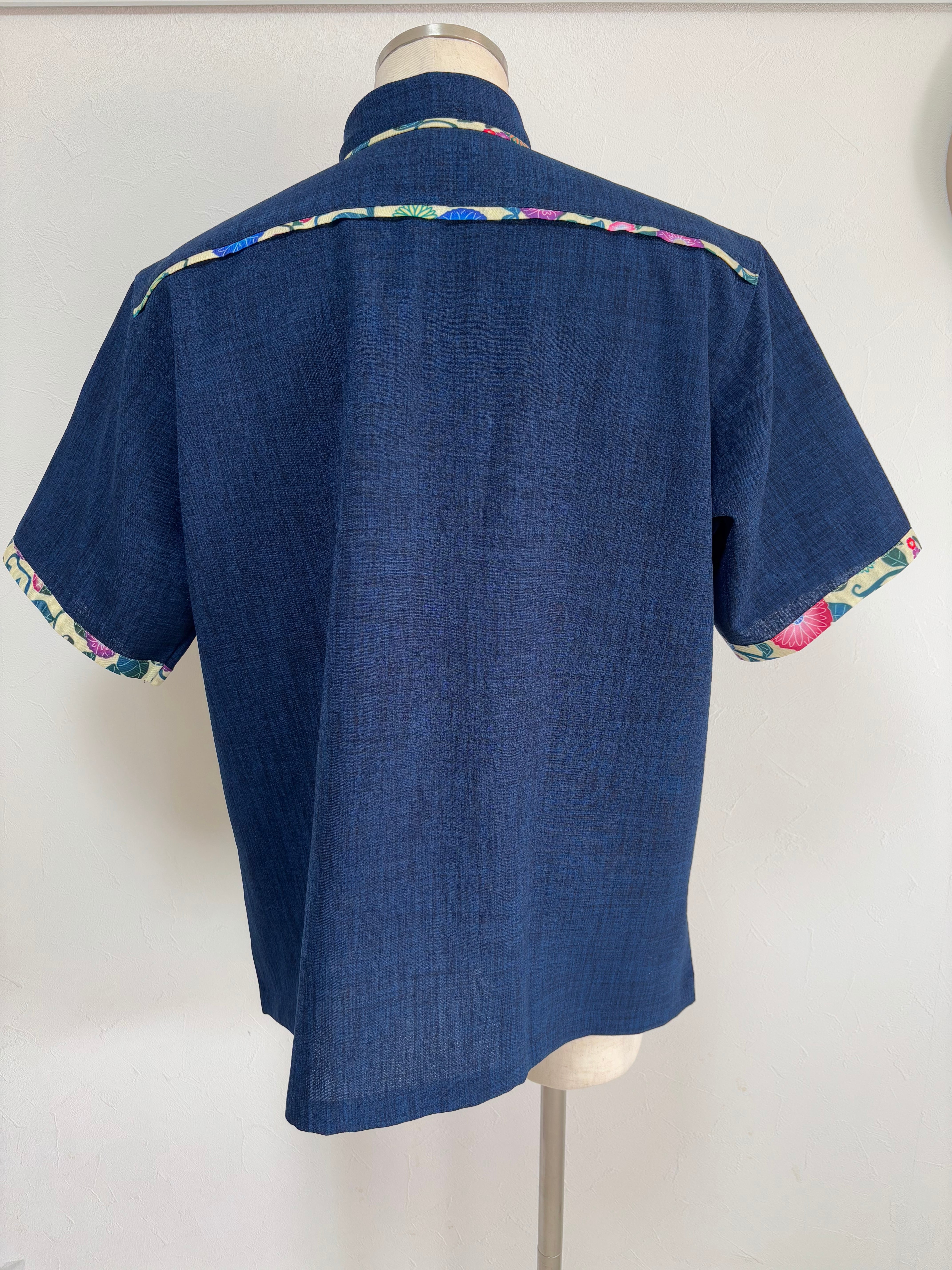 深みのある紺色を基調にした、伝統的な紅型柄が映えるメンズBDが新たに登場しました。洗練されたデザインは、周囲の視線を惹きつける魅力があります。ポリエステル100%の素材を使用しているため、シワになりにくく、さまざまなシーンで落ち着いた印象を与えてくれます。